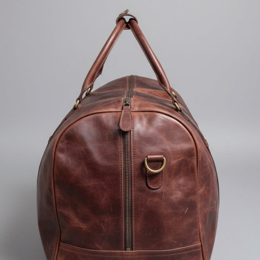 A 20" full grain leather duffle bag with a rich two-tone finish, wide main opening and comfortable carry options. Perfect for weekends away, business trips or the gym.