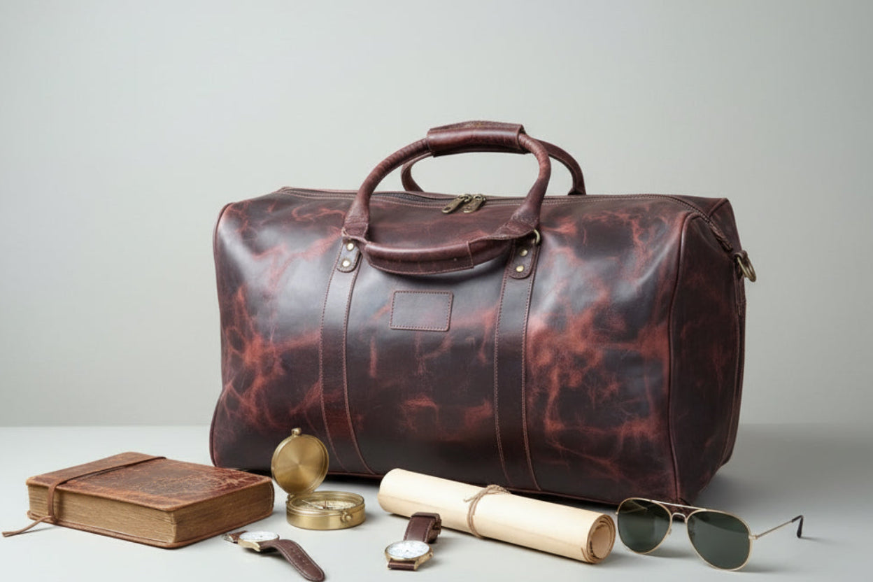 24" Full Grain Leather Duffle Bag – Two-Tone Vintage Weekender